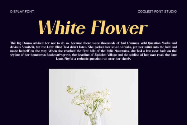 - Editorial Layouts & Magazines: With elegant readability and stylish contrasts, it works beautifully in magazine titles, pull quotes, and article headlines.